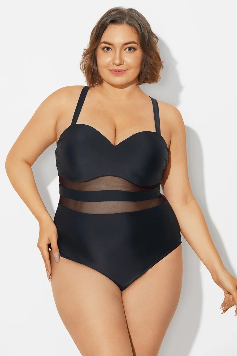 Plus Size Mesh Stitching Sling One Piece Swimsuit - PremCurve