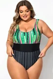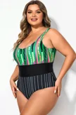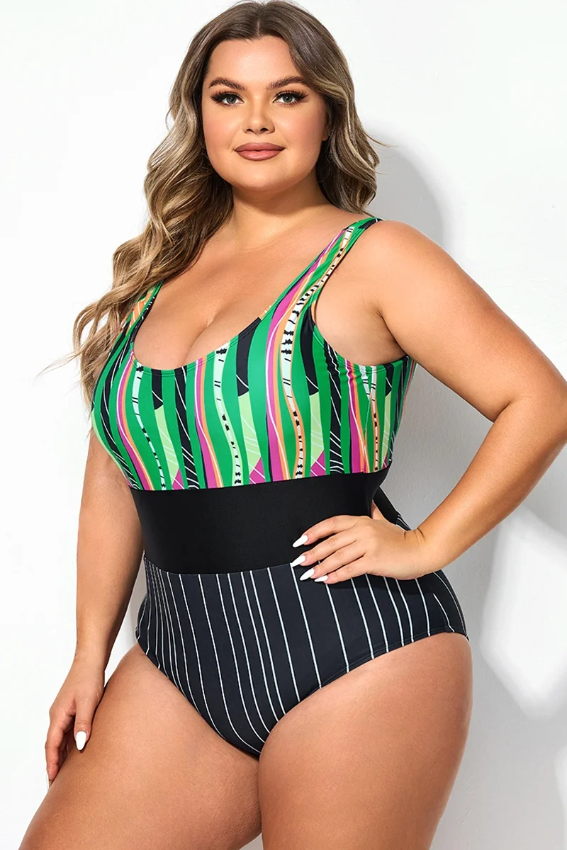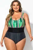 Plus Size Mixed Stripe Print One Piece Swimsuit