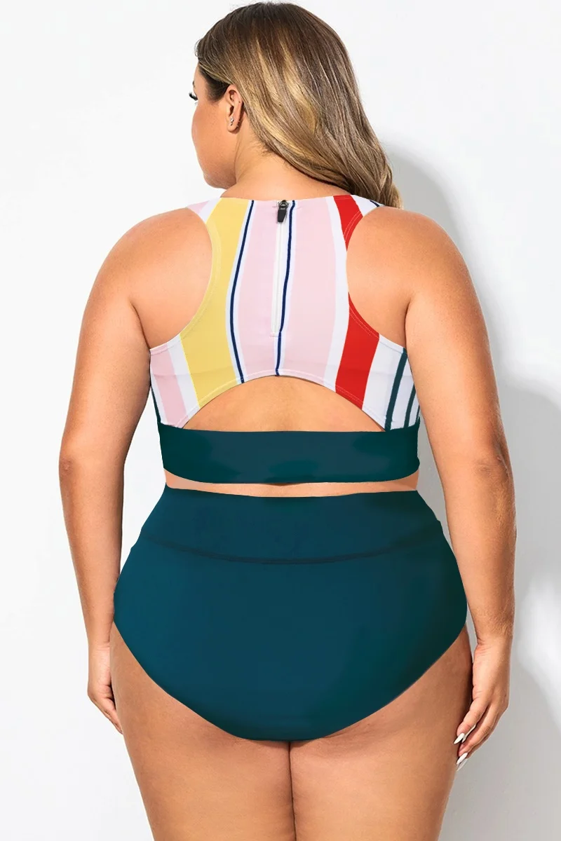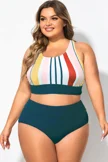 Plus Size Multi Colorblock Patchwork Bikini Top