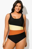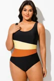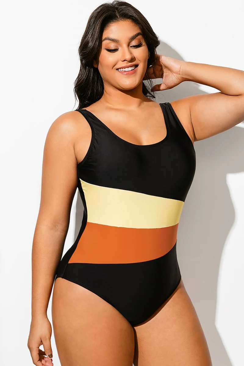 Plus Size Patchwork Push Up One Piece Swimsuit - PremCurve