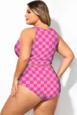 Green Check Twist Front One Piece Swimsuit
