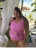 Plus Size Round Neck Black Patchwork Bikini Top