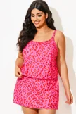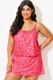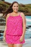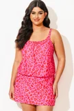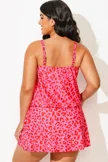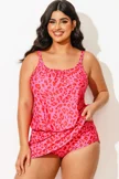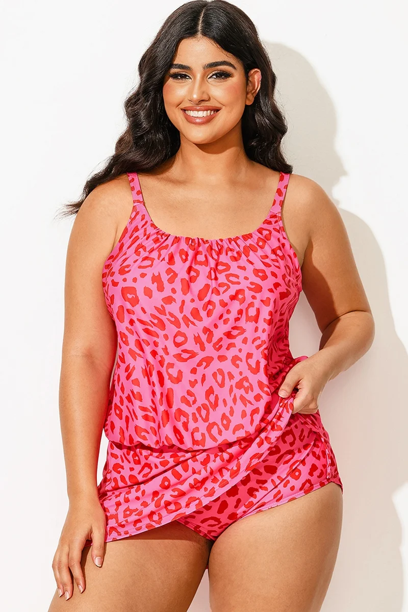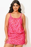 Plus Size Pink Leopard Print Blouson Tankini Top - PremCurve