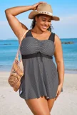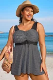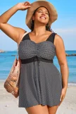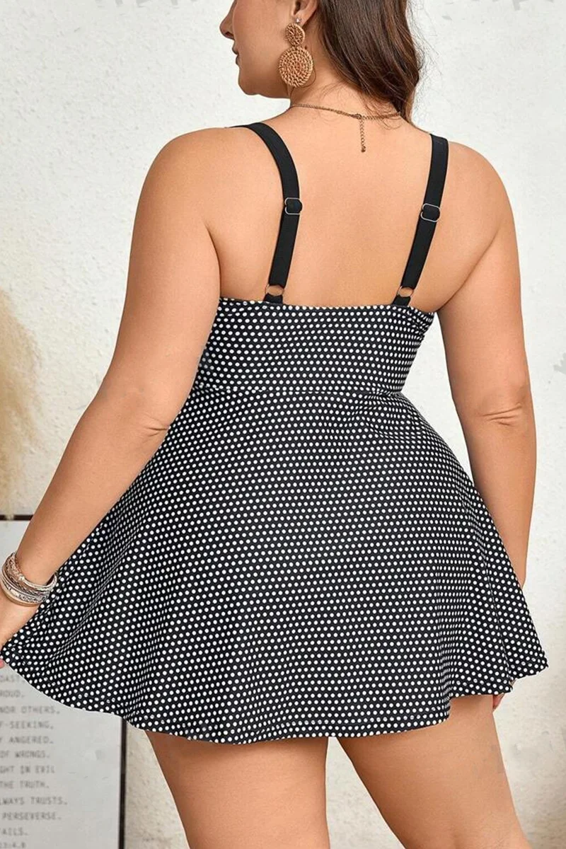Plus Size Polka Dot Drawstring Swimdress - PremCurve