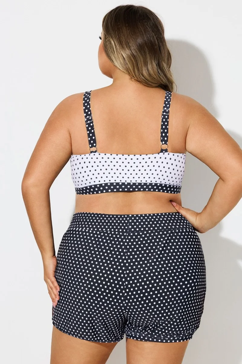 Plus Size Polka Dots Square Neck Bikini Top - PremCurve