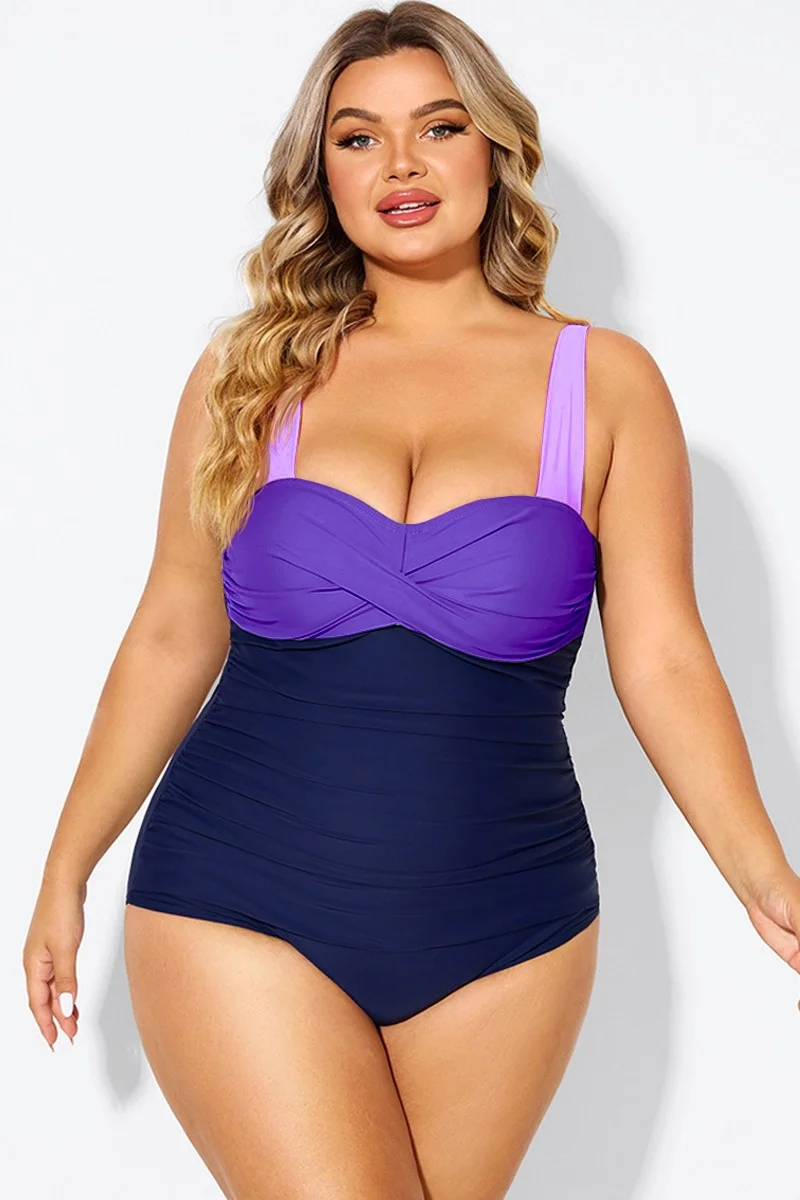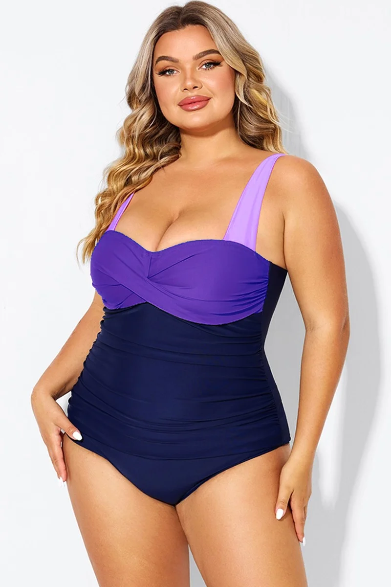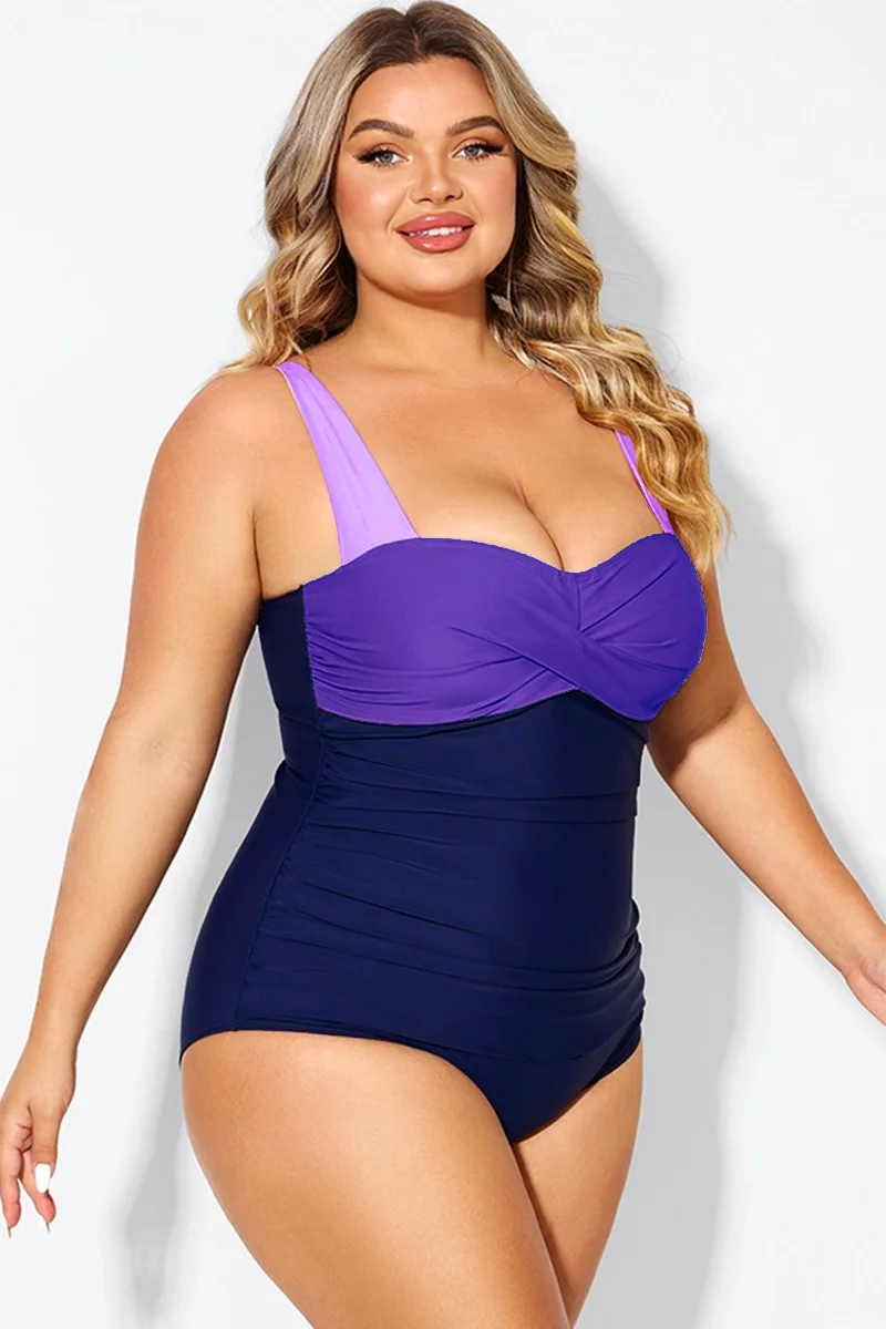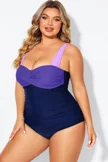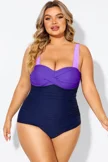 Plus Size Purple Color Block One Piece Swimsuit - PremCurve
