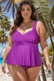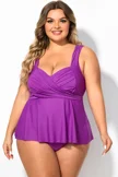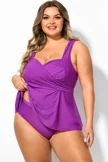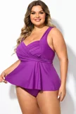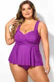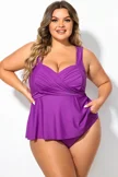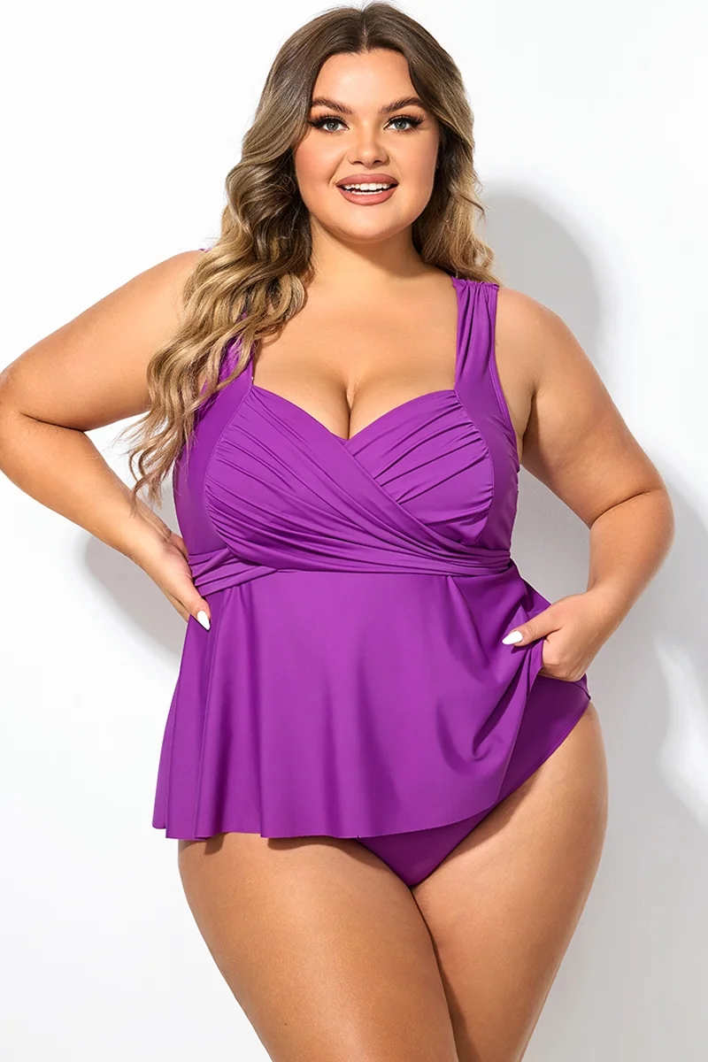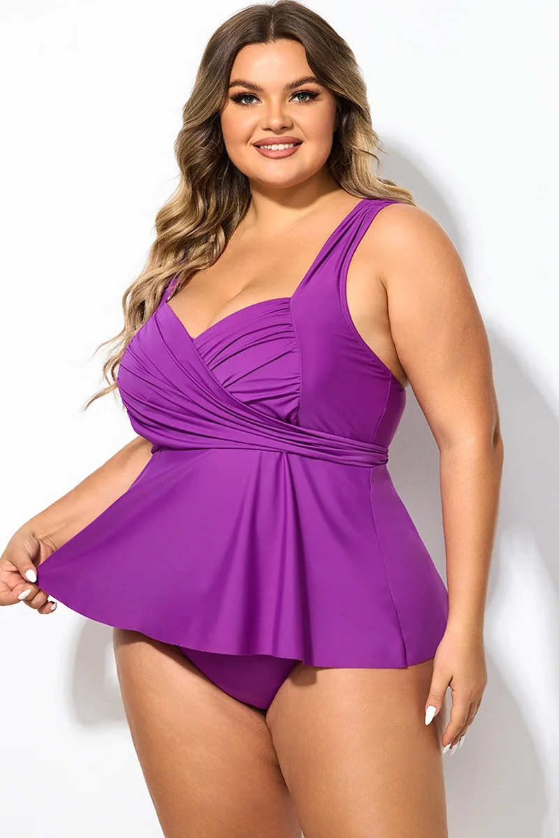 Plus Size Purple V-Neck Wrap Tankini Top   - PremCurve