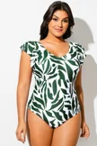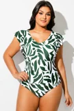Plus Size Random Printed V-Neck One Piece Swimsuit