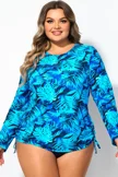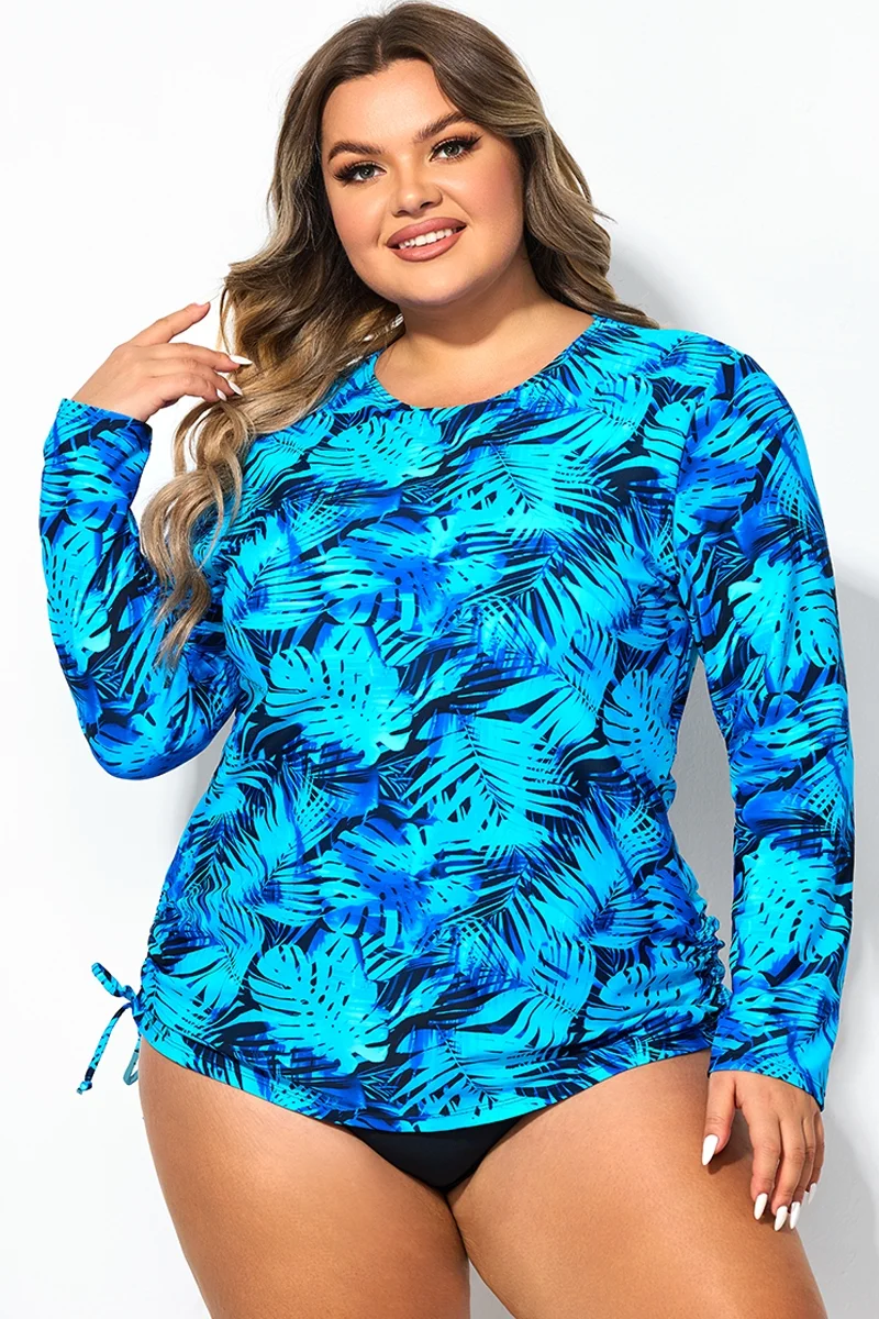 Blue Shirred High Waist Swim Brief For Lady