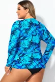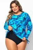 Plus Size Round Neck Black Patchwork Bikini Top