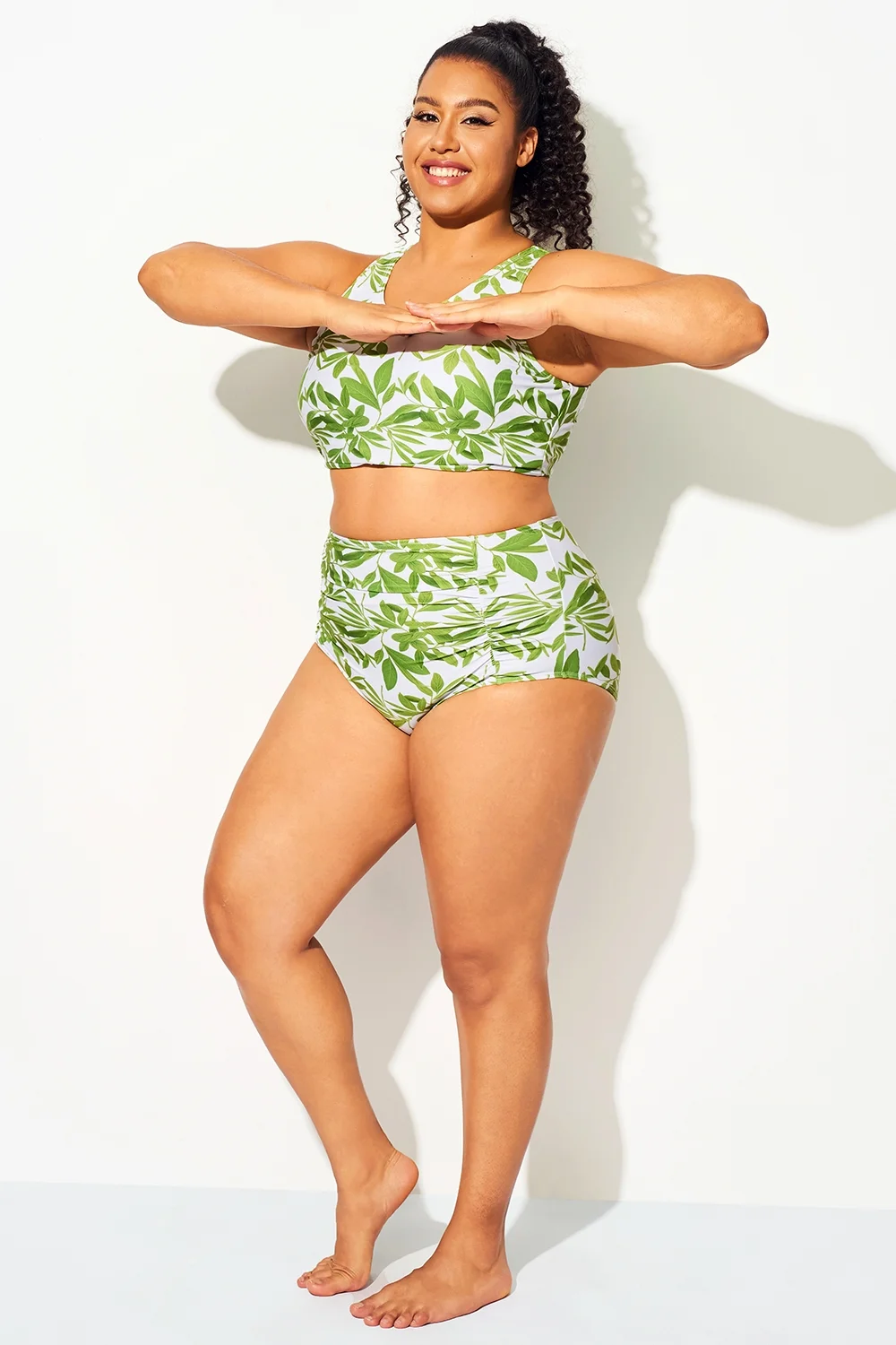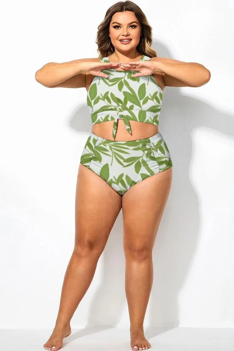 Plus Size Tropical Green High Waisted Bottom