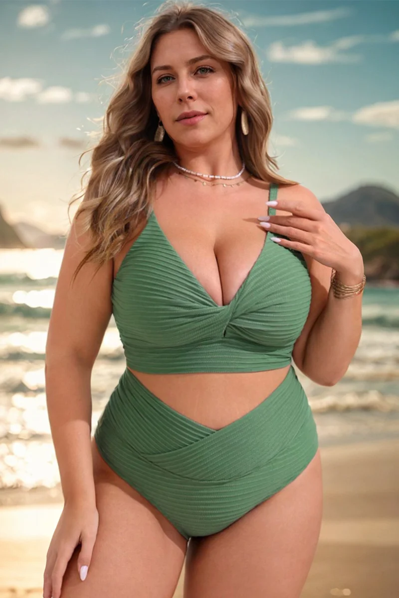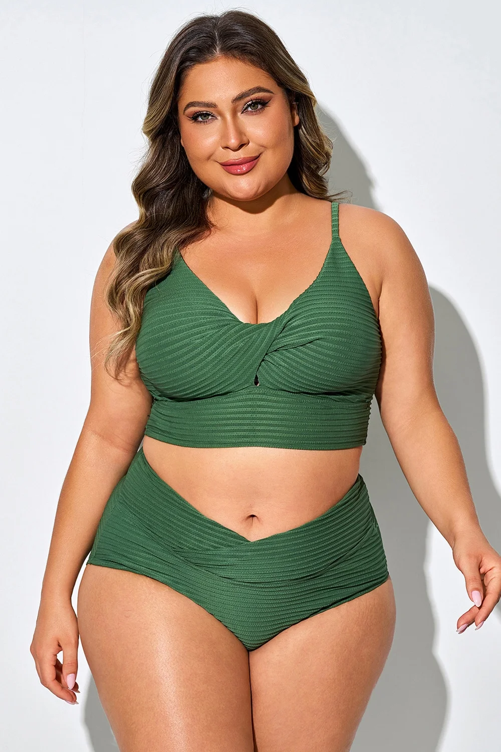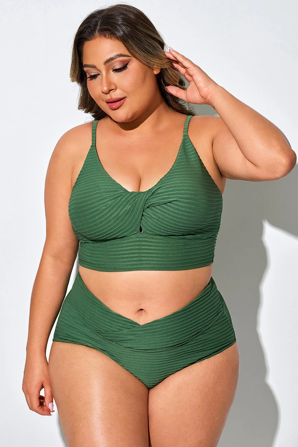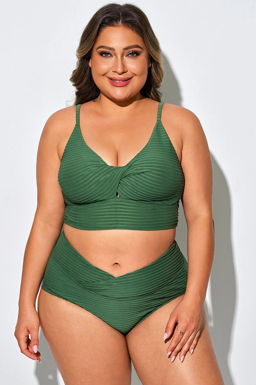 Plus Size Twist-Front Spaghetti Strap Bikini Top - PremCurve