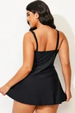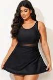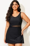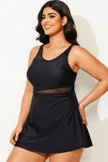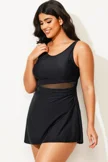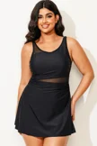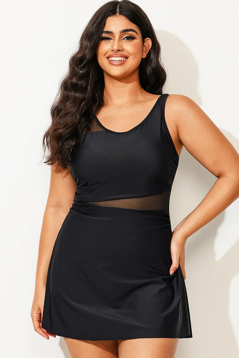 Plus Size V-Neck Black Mesh Panel Swimdress