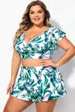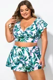 V-Neck Random Print Halter Sexy Bikini Top