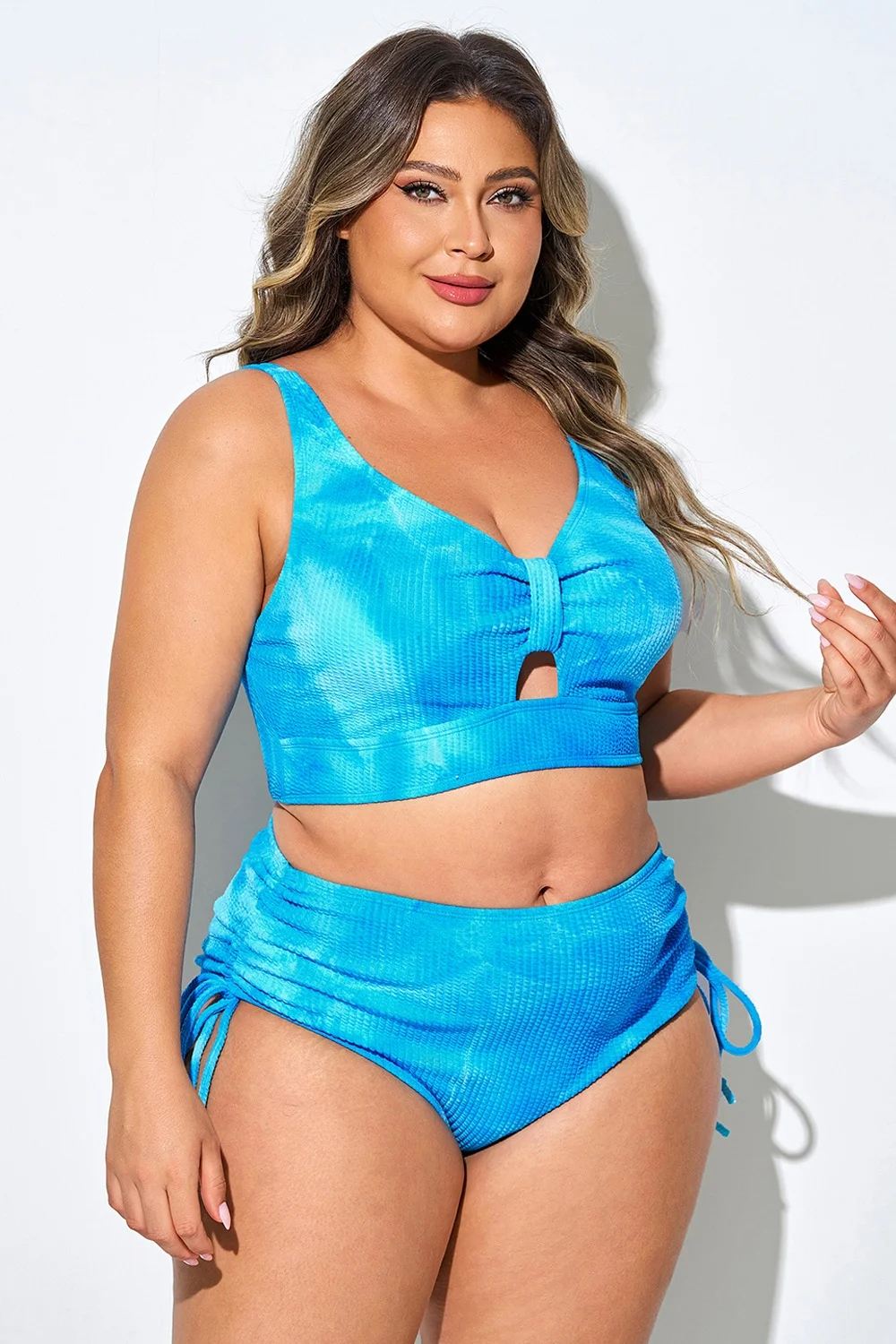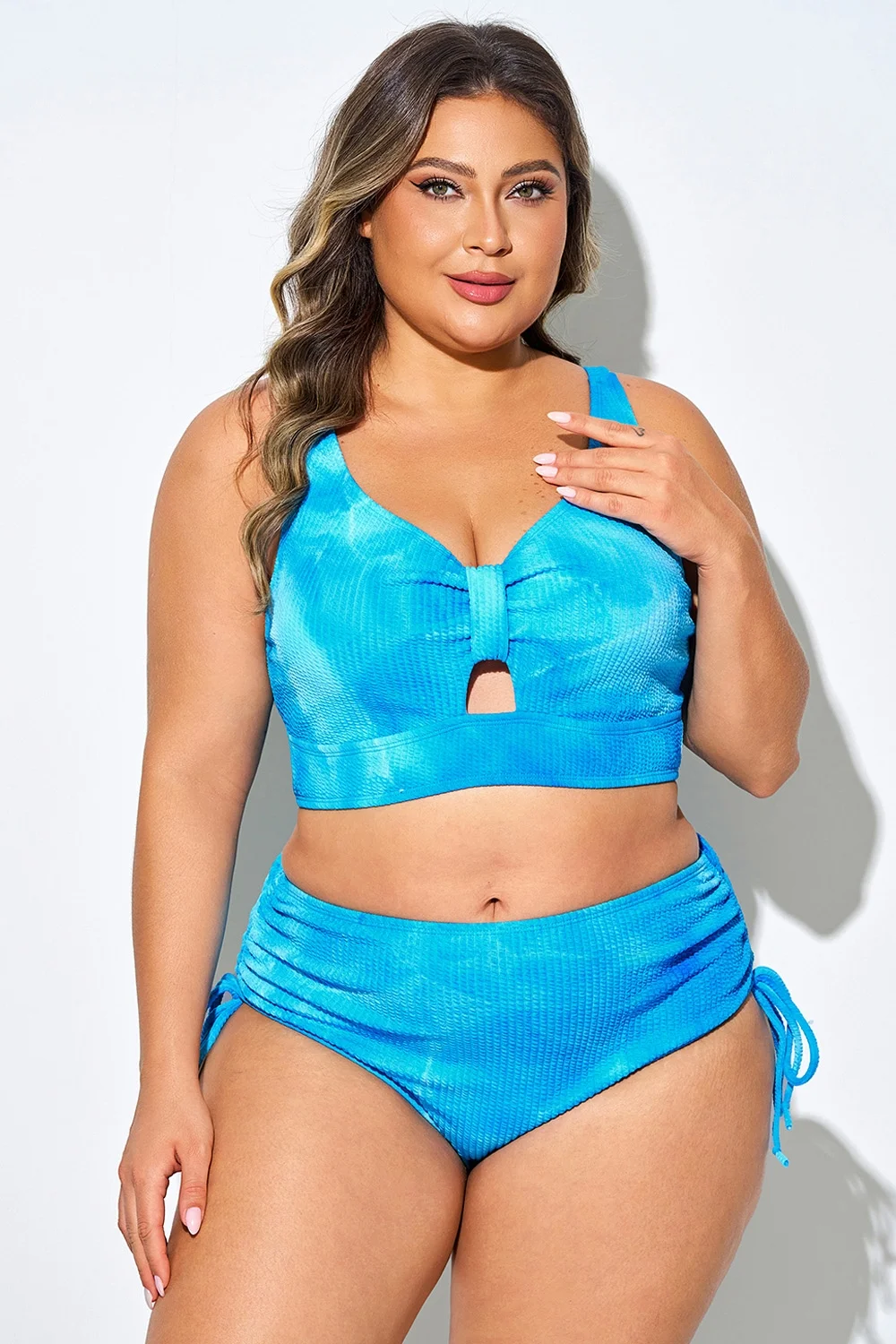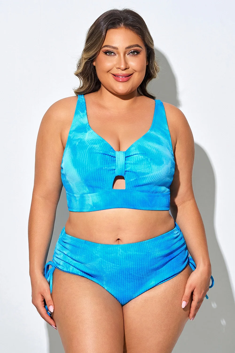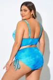 Plus Size Women Blue Ruched Bikini Top - PremCurve