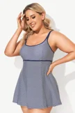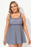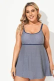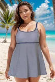 Polka Dot Scoopneck Double Lingerie Straps Swimdress - PremCurve