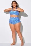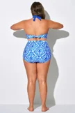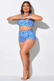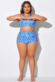 Blue Shirred High Waist Swim Brief For Lady