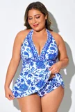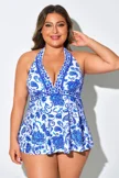 Porcelain Blue Halter Strap Backless Tankini Top - PremCurve