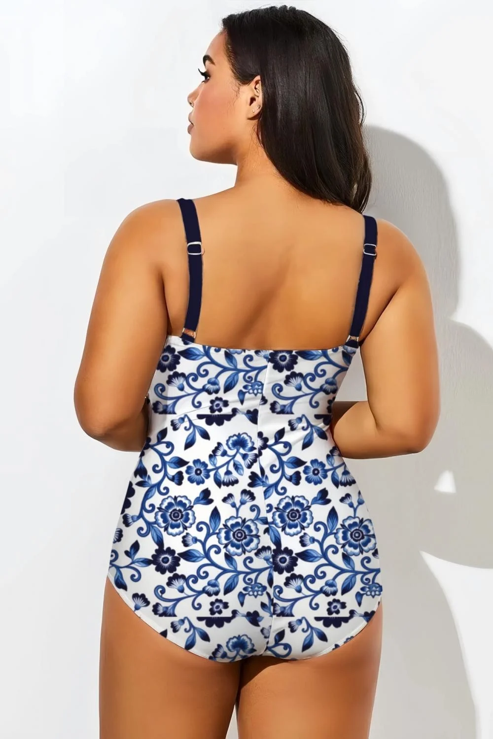 Porcelain Blue Twisted Gathered One Piece Swimsuit - PremCurve