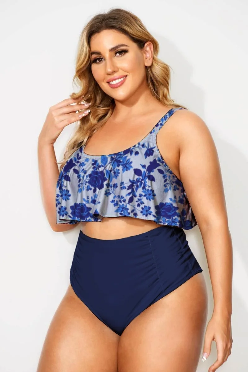 Porcelain Style Printed Scoop Neck Bikini Top - PremCurve
