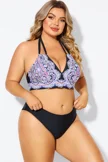 Printed Self-tie Halter Straps Bikini Top