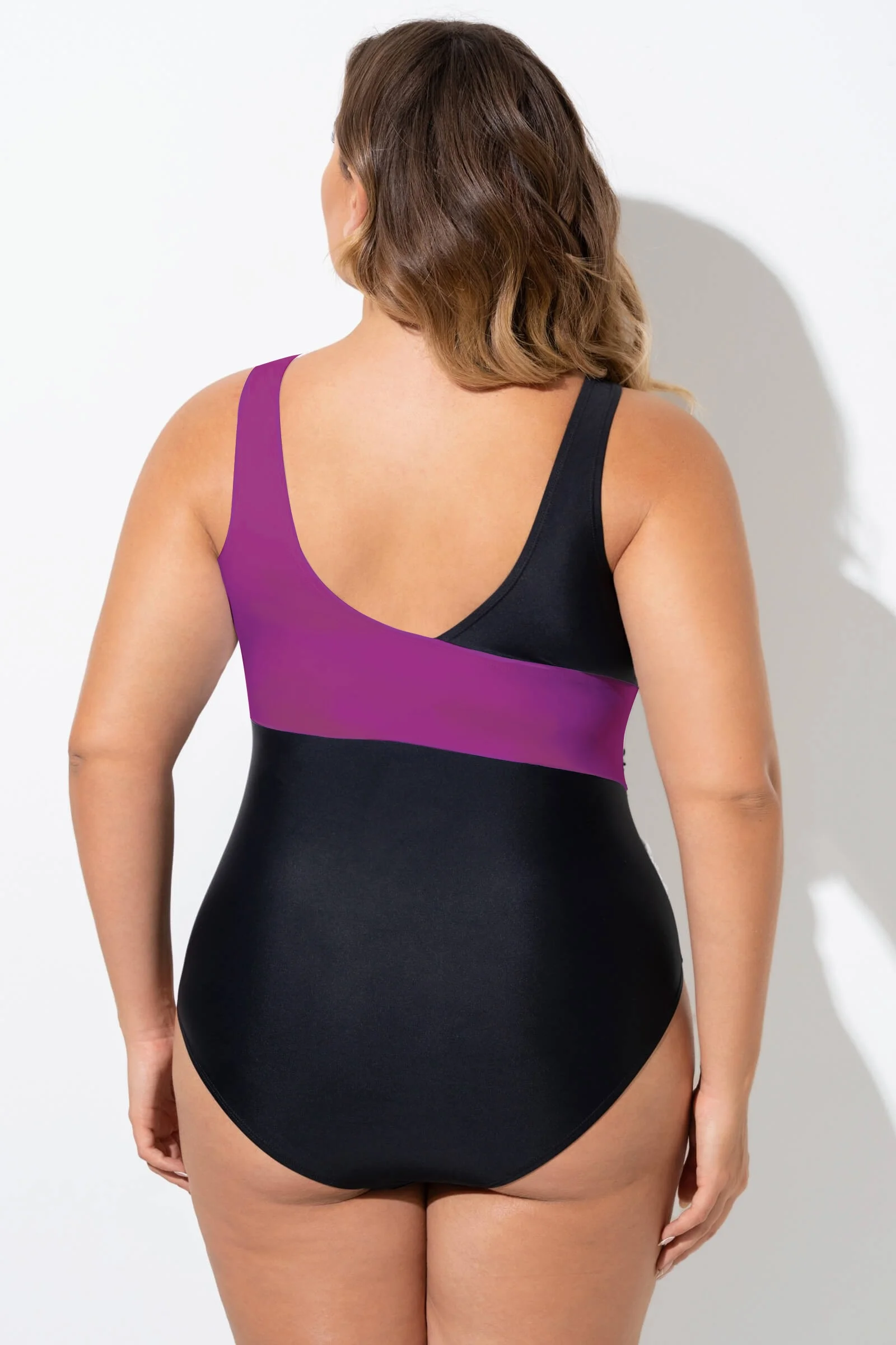 Purple & Black Sexy Cut Out Mesh One Piece Swimsuit - PremCurve