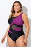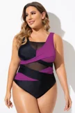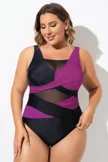 Purple & Black Sexy Cut Out Mesh One Piece Swimsuit
