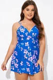 Purple Butterfly Print V-neck Loop Strap Swimdress