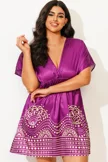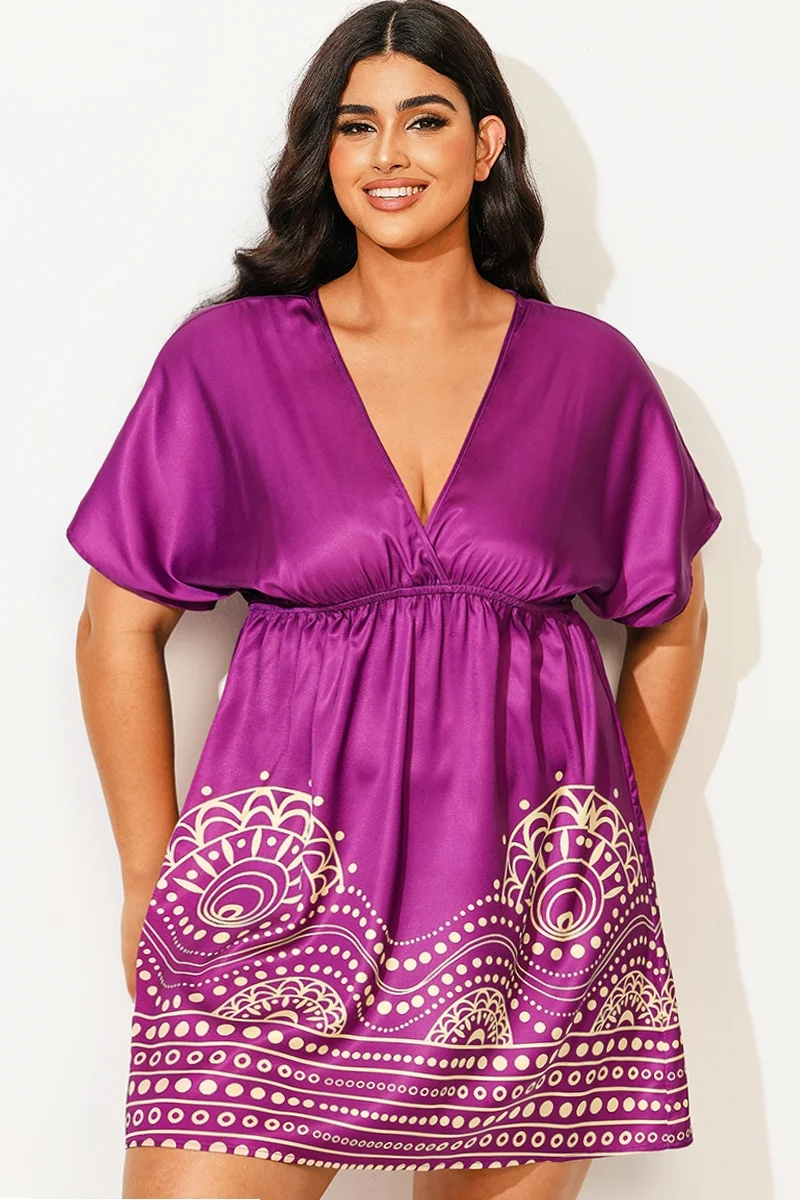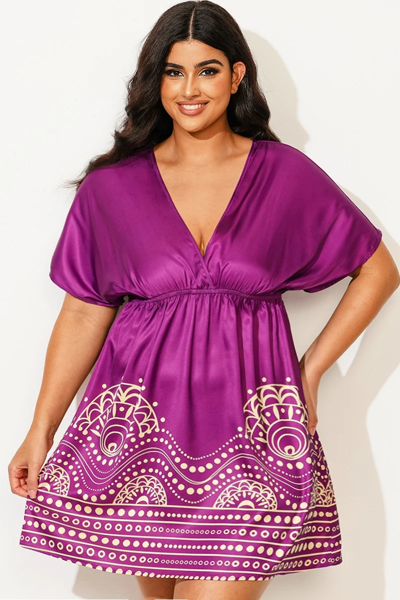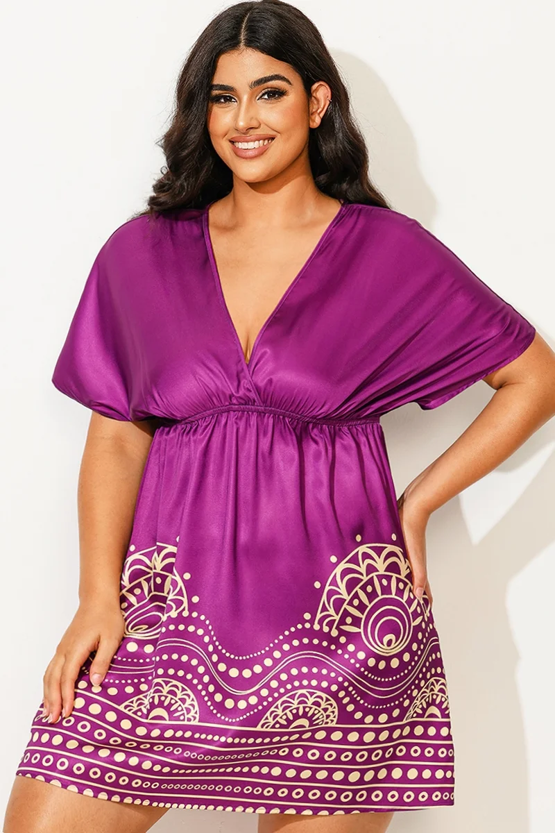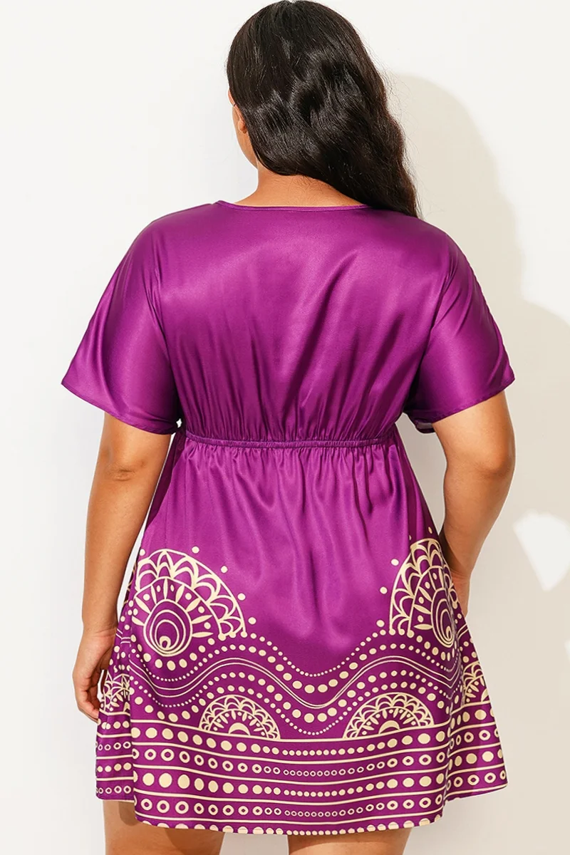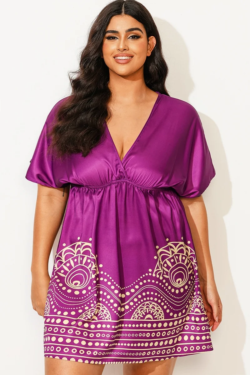 Purple Elastic Waistband V-Neck Cover Up Dress - PremCurve