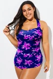 Purple H-Back Sarong Front One Piece Swimsuit - PremCurve
