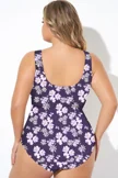 Purple Stripe Floral Print Knotted One Piece Swimsuit - PremCurve