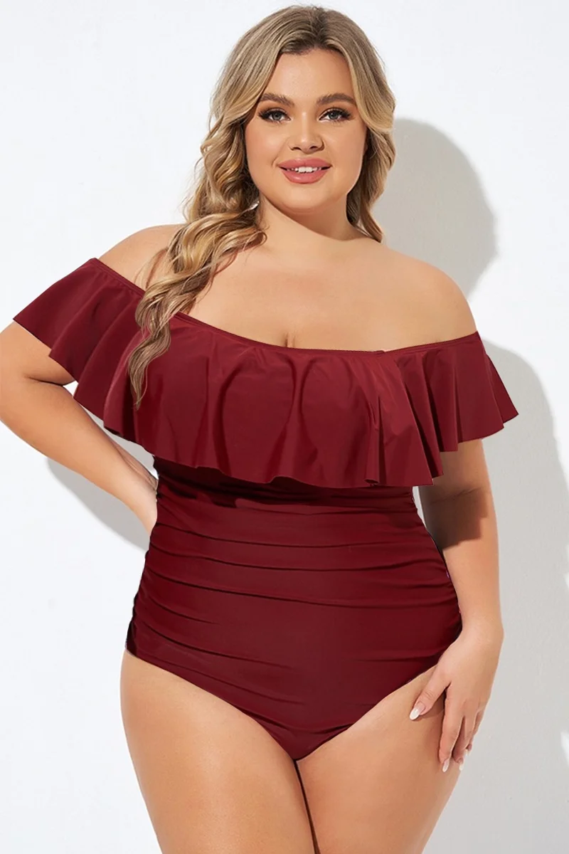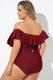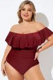 Red Bandeau Off the Shoulder One Piece Swimsuit - PremCurve