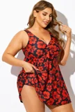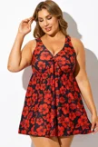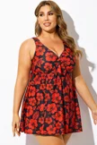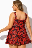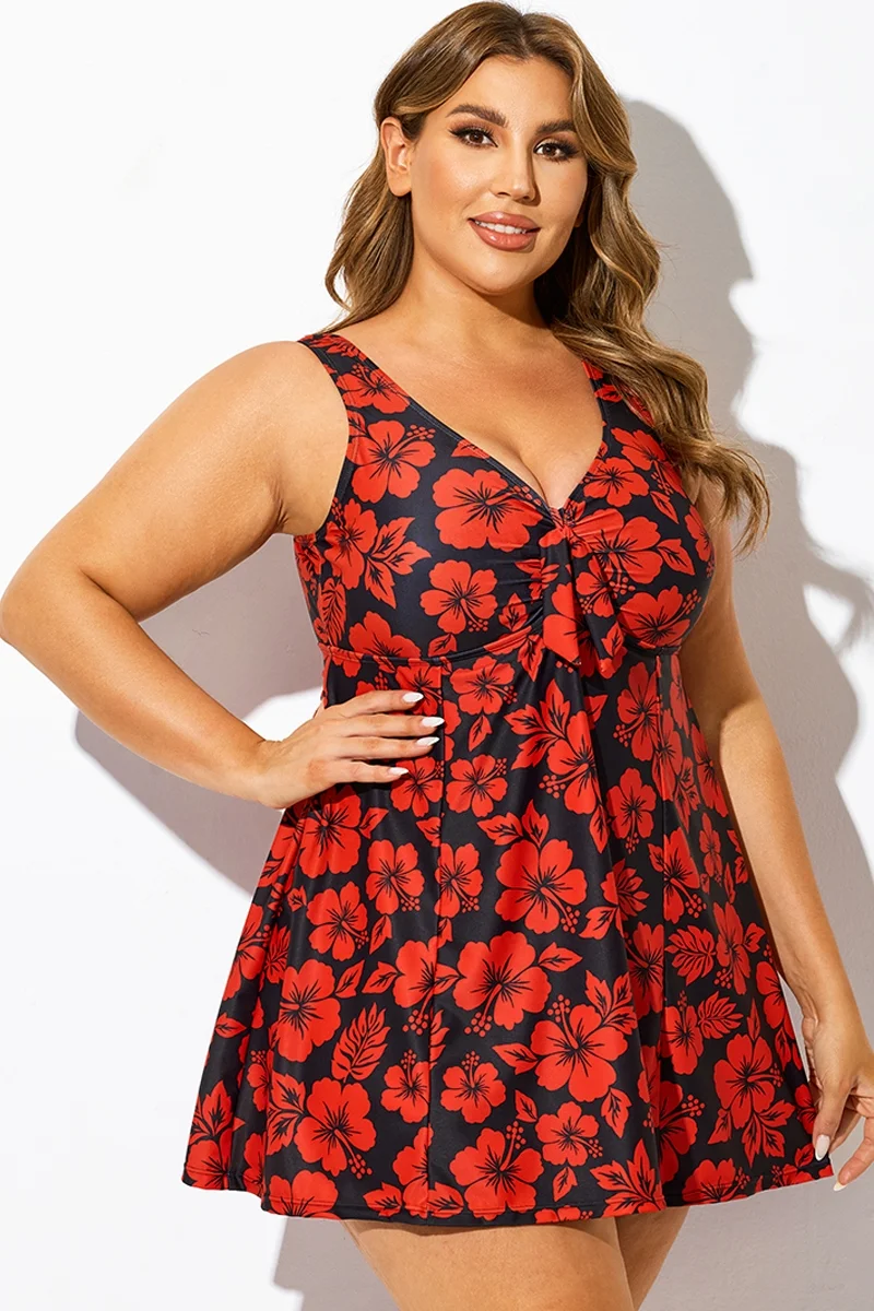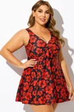 Red Floral Print Tie Front V-Neck Swimdress