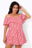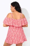 Super cute swimsuit. It covered the areas I wanted covered, which is my hip and thigh areas. Underneath the dress is a one piece that is like a bikini bottom attached to mesh covering that cutely displays your belly if you wanted it to. The bra inlet is supportive but is not designed to show off the girls, but if that's not your intention, no biggie. Overall, sooo cute, no regrets.