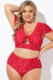 Red Geometric Interwoven Print Bikini Top - PremCurve