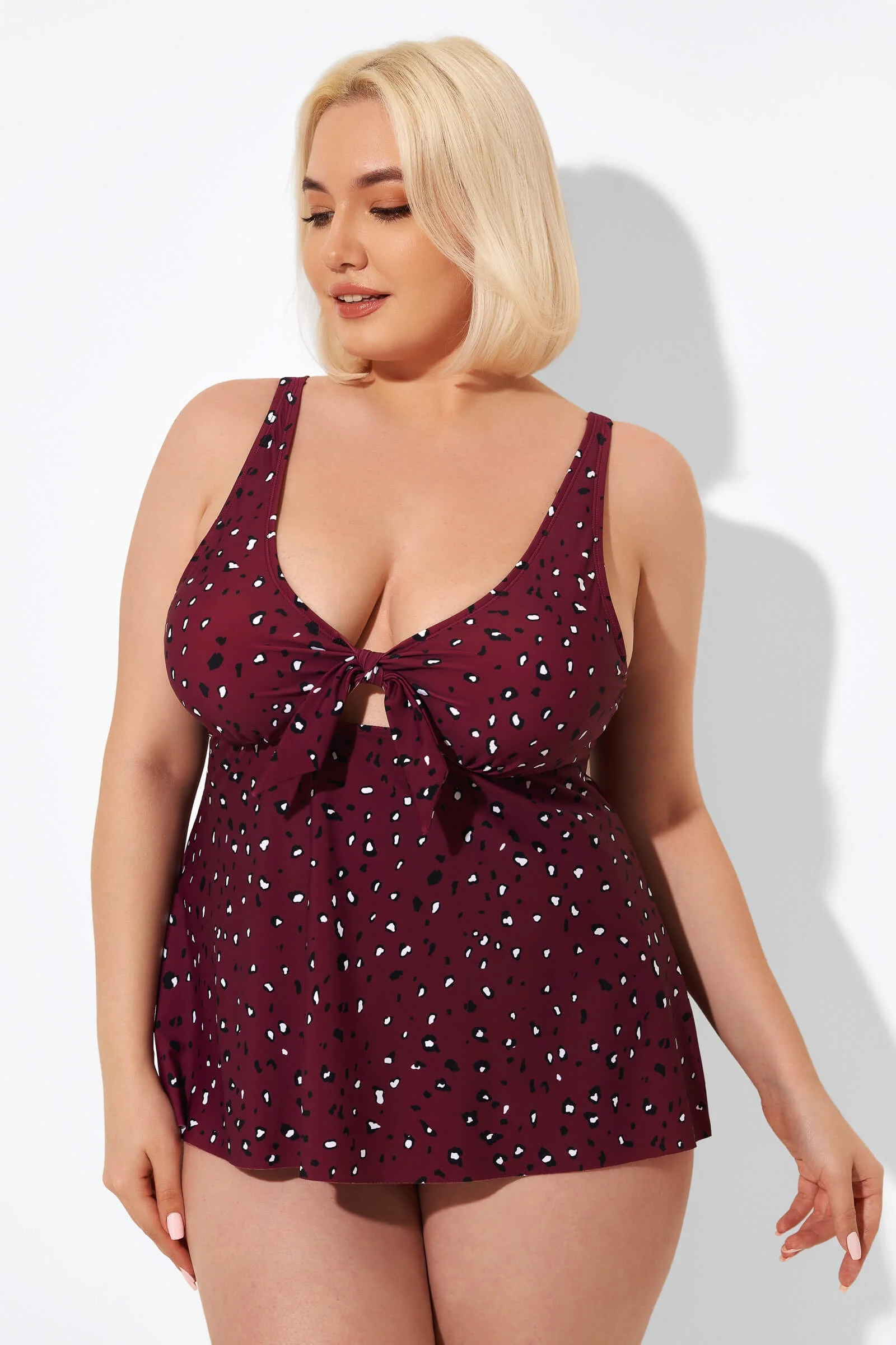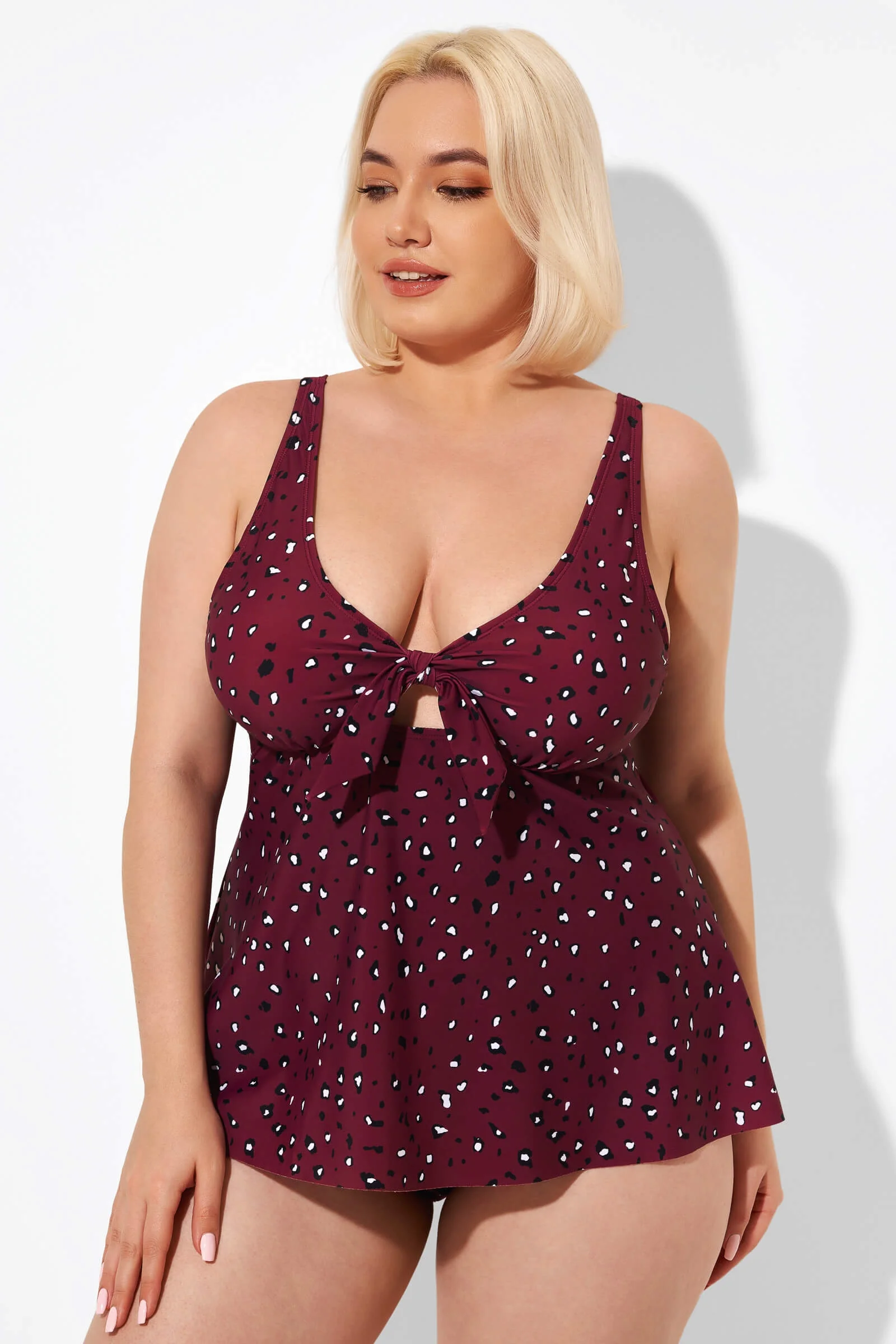 Red Tie Front Adjustable Straps Tankini Top - PremCurve