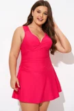 Red V-neck Twist Front Shirred Underwire Swimdress - PremCurve