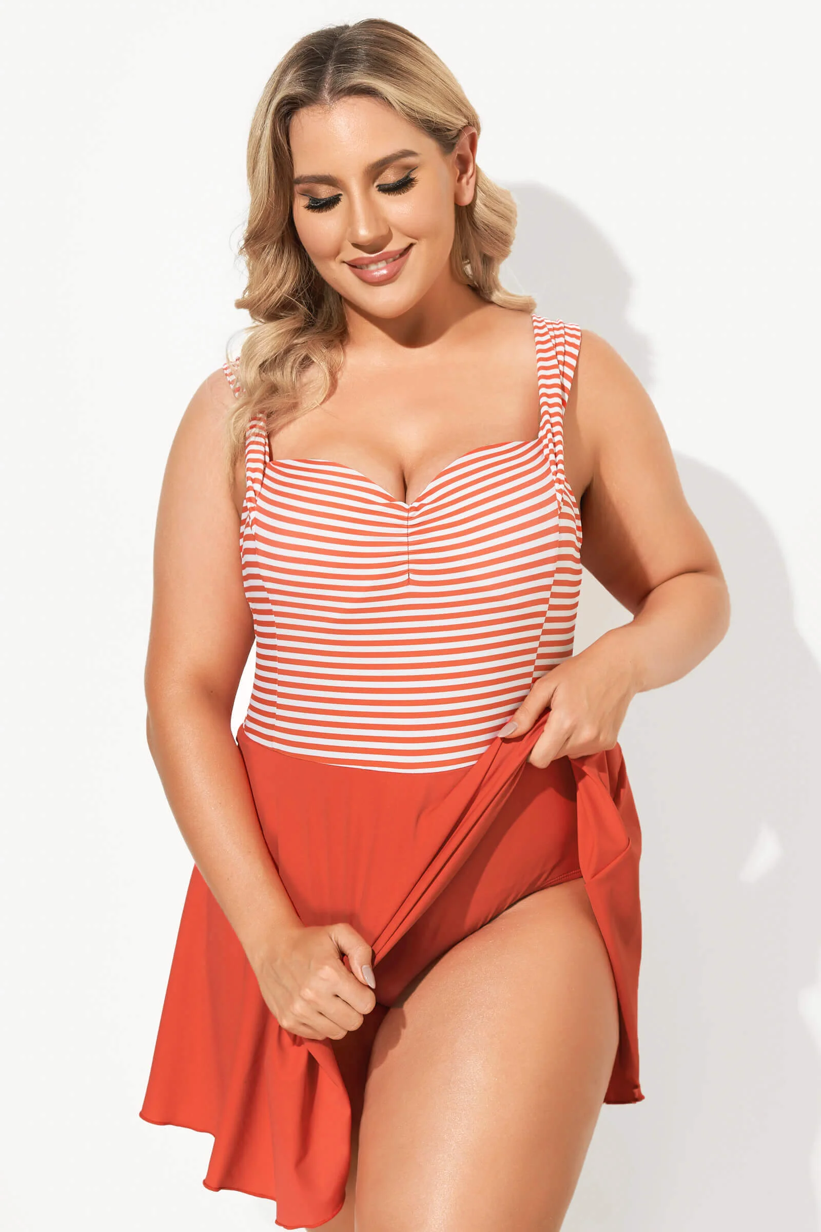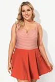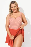 Red & White Stripe Halter Flattering Underwire Swimdress - PremCurve