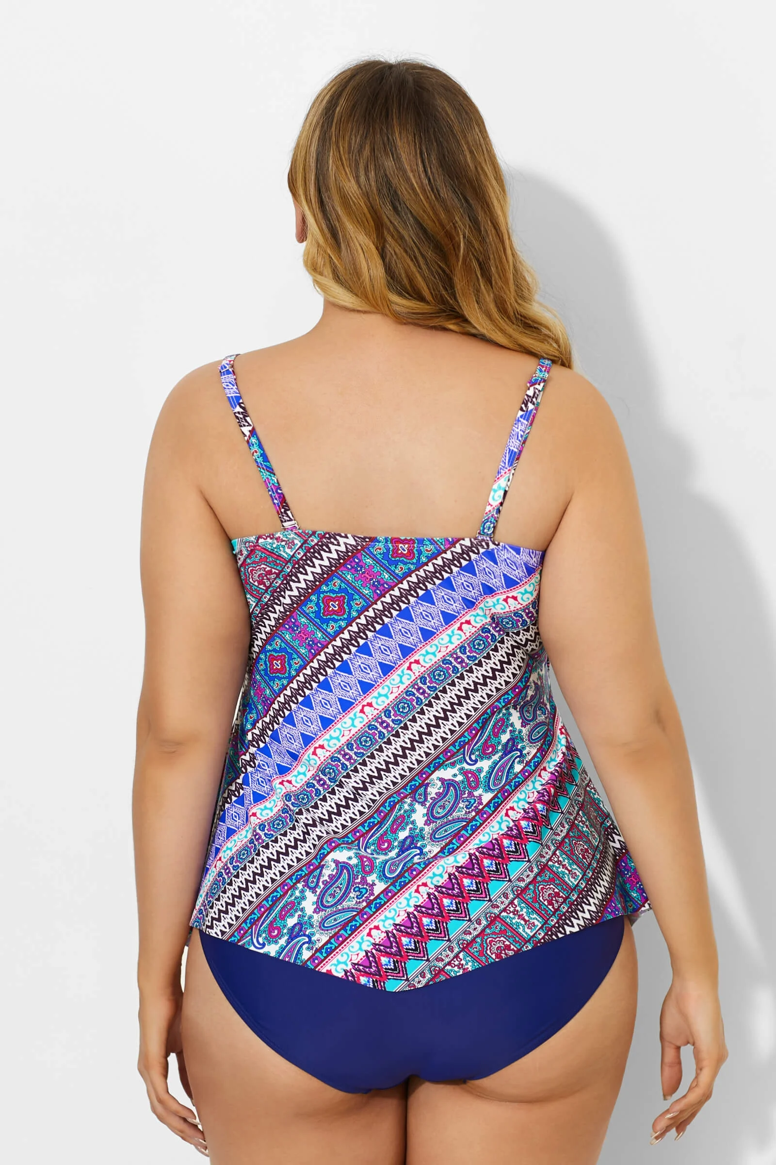 I am 5’4” - 213lbs. Bust/Bra size: 38D Size ordered: 2XL. I normally wear XL in normal clothing so I was hesitant when I ordered a 2XL. I hate when bathing suit tops are too small, push my boobs down and make them look flat and saggy so I had to go with a bigger size. (I have experienced sizes normally run small when ordering online and I was right. So I’m glad I ordered up!) I was afraid 2XL would be too big for my 38D cup size (and it was a little loose but still held my girls up just fine) It’s spandex material makes it fit a little snug under the bust area which was actually a plus because it gives me a figure and actually hold my boobs up. I can actually wear it without a bra underneath!. I am also a short person and have had 3 C-sections so it is important for the length in the front to cover my tummy fat! It was perfect. The back was a little short in my opinion. I prefer more buttock coverage but Overall I absolutely love this top! Has adjustable straps