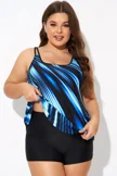 Round Neck Blue Ombre Printed Tankini Top - PremCurve