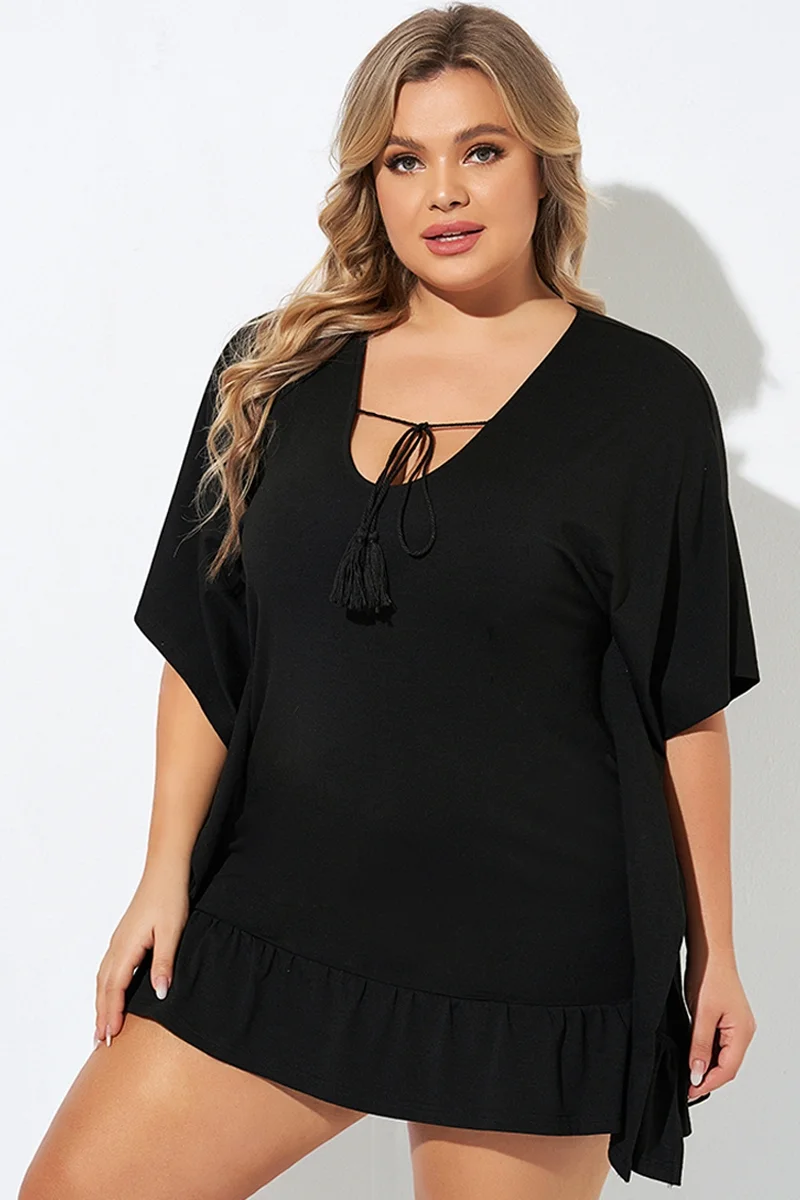 Ruffle Hem Tassel Tie Detail Cover Up Tunic - PremCurve