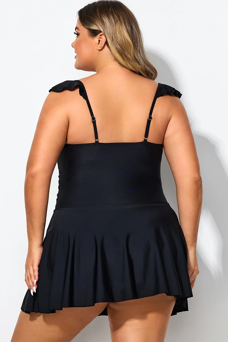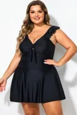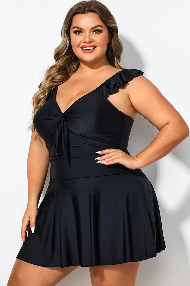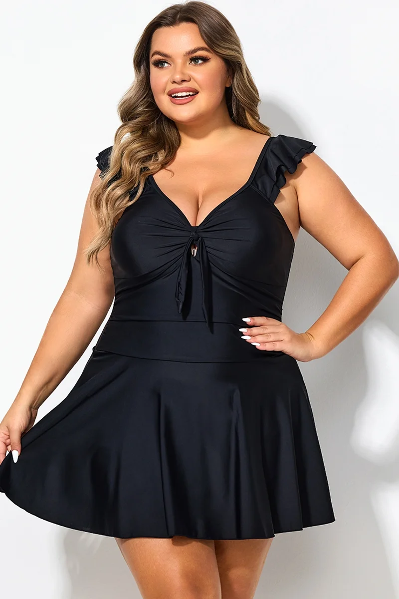 Ruffle Swimsuit Tie Knot Front Ruched Vintage Swimdress - PremCurve