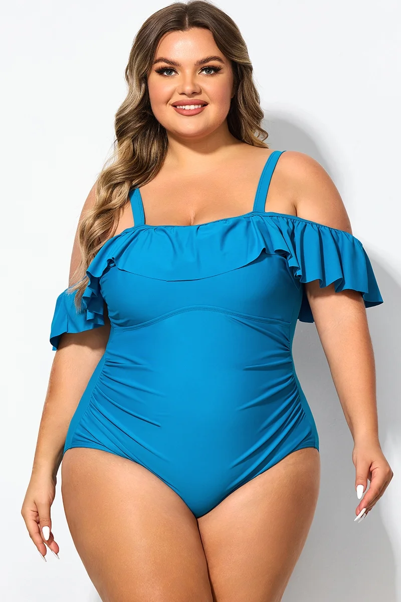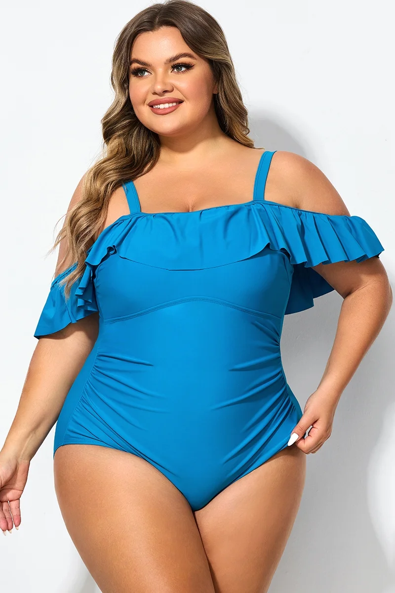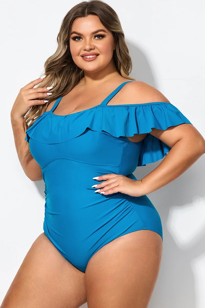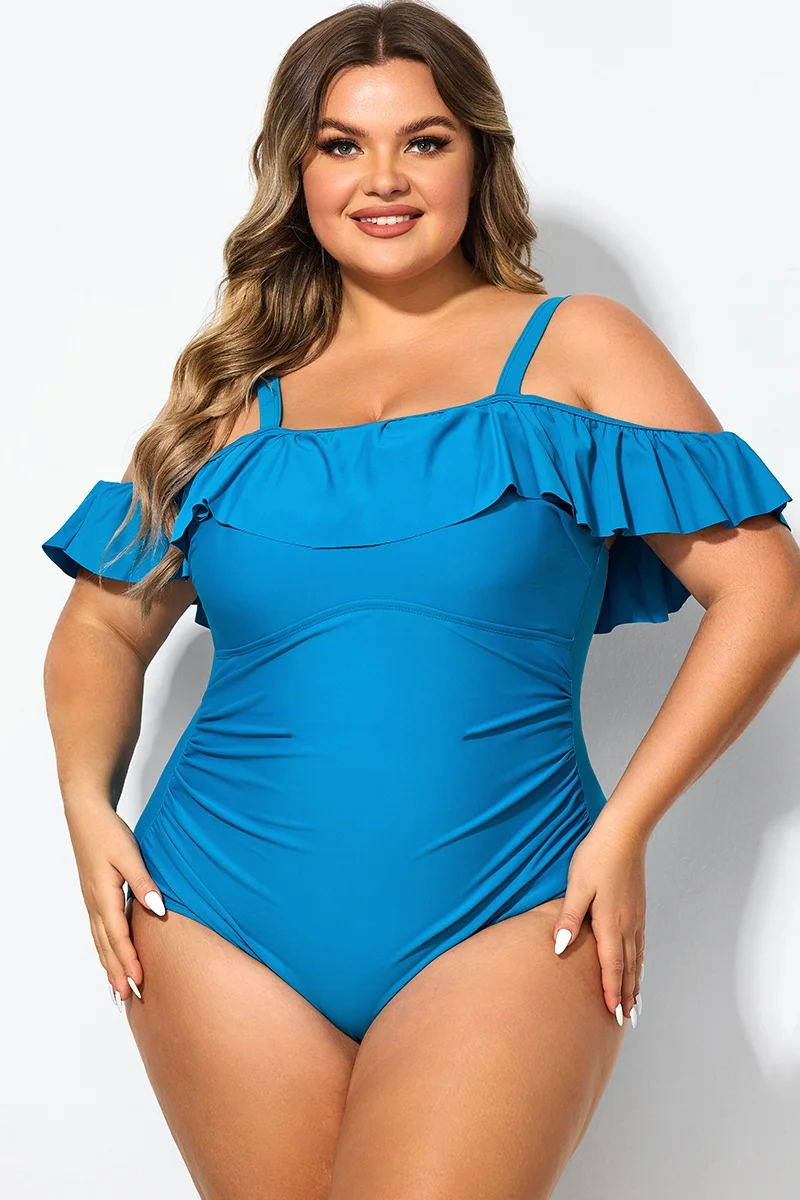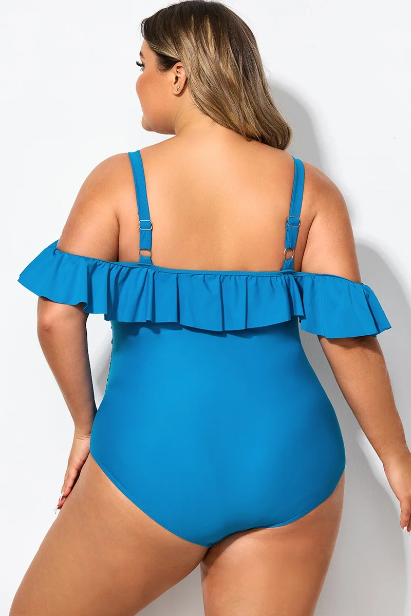 Ruffled V-neckline Adjustable Shoulder Straps One Piece Swimsuit