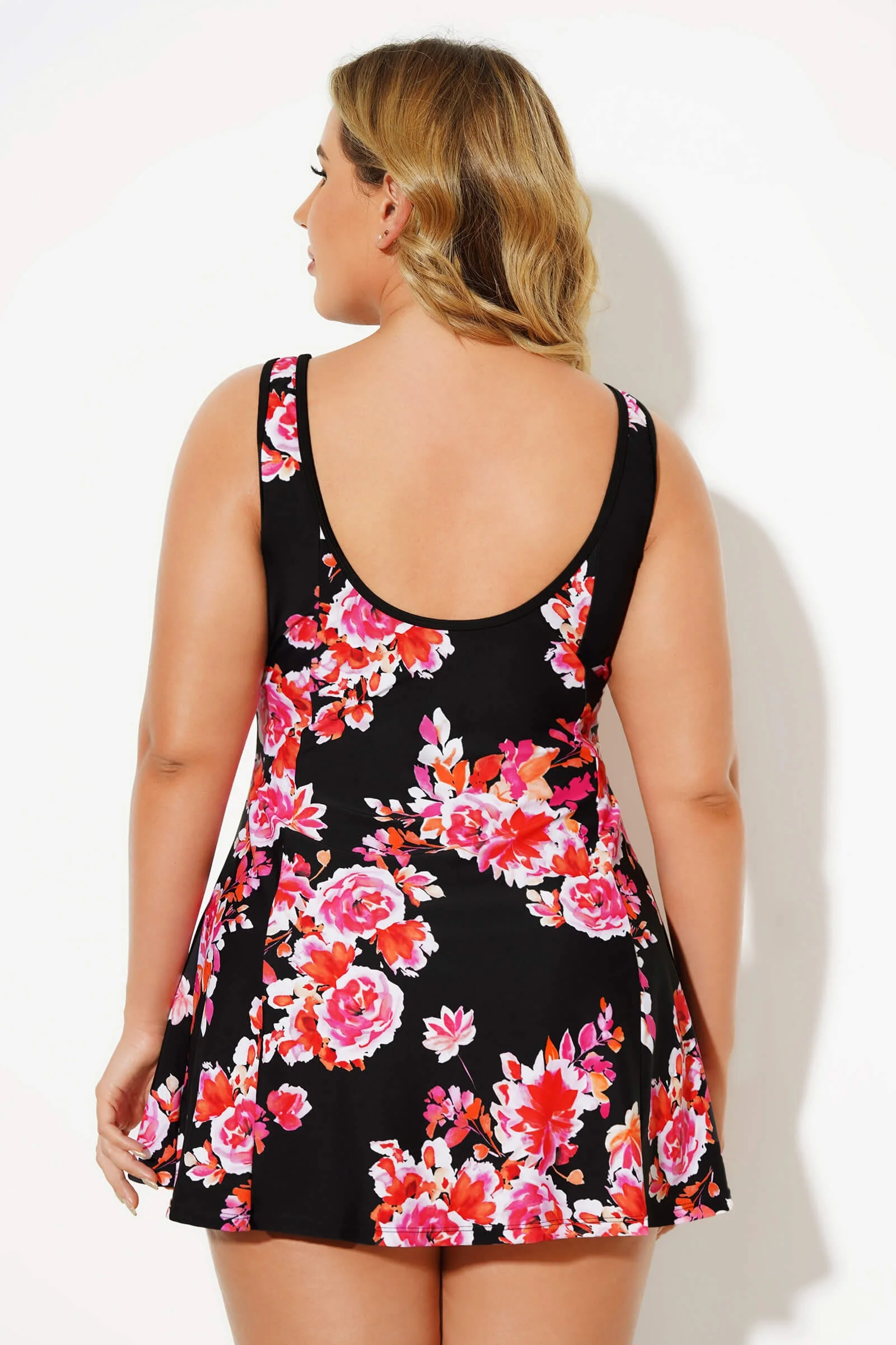 Scoopneck Floral Printed Vintage Women Swimdress - PremCurve