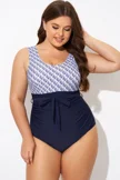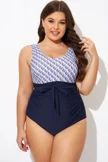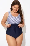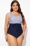 Shell Print Round Neck Belt One Piece Swimsuit - PremCurve