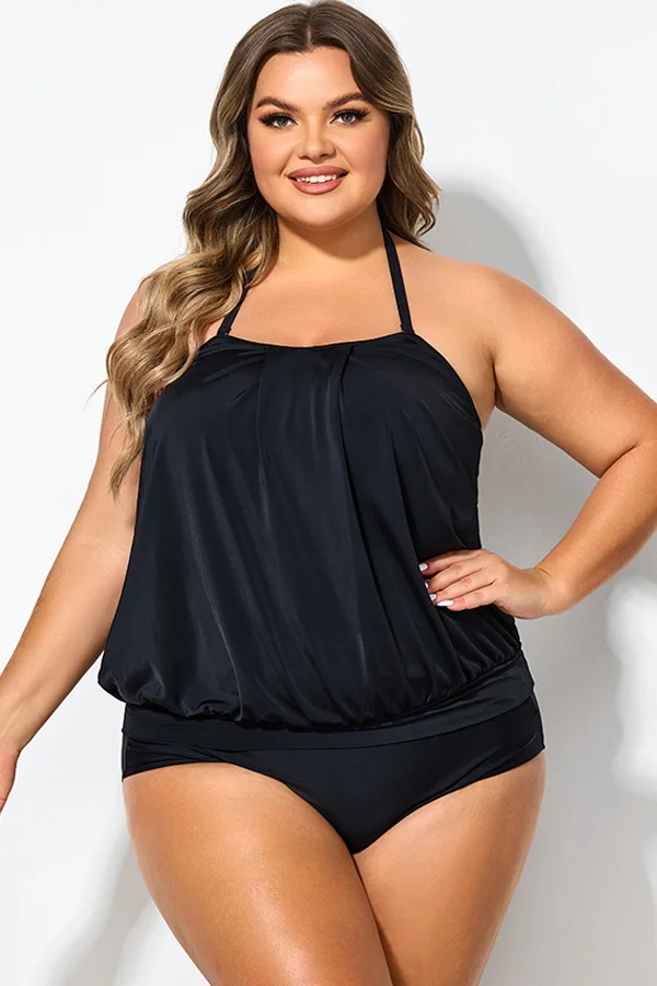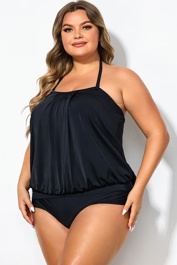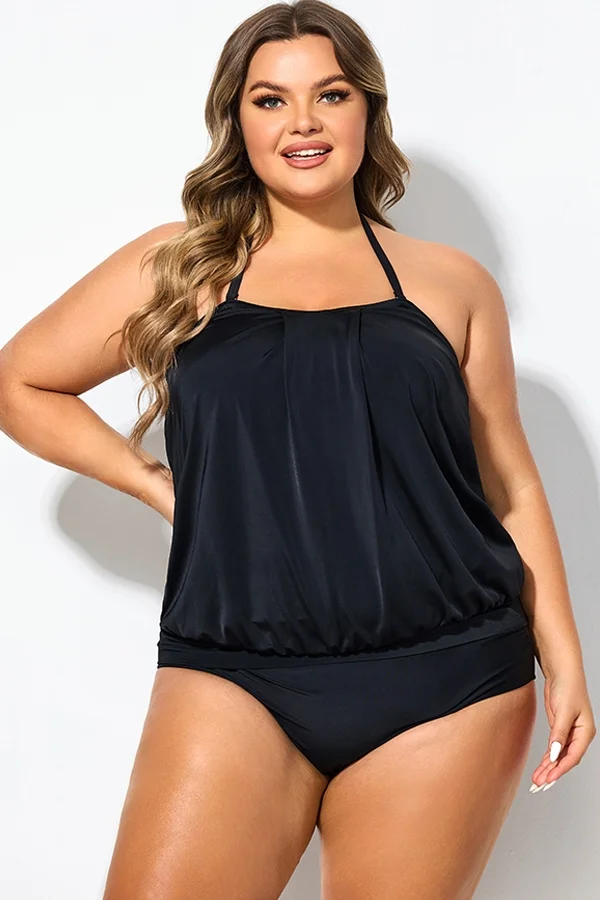 Soild Black Sexy Loose Bandeau Tankini Top - PremCurve