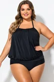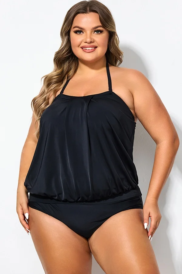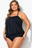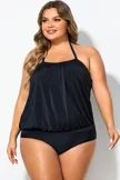 Soild Black Sexy Loose Bandeau Tankini Top