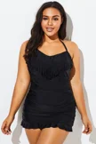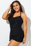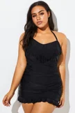 This swimsuit is cute, it’s a little heavy but it covers well. I ordered the XL even though the measurements put me at L Because I wanted ruching. I’m glad I did the XL looks good. It is worth mentioning that the picture makes it look like it’s all one dress and all the lines are ruching but actually it looks like a top and skirt sewn together when you look at it. There’s a sew line. You can’t tell so much in the front but in the back there isn’t much ruching so it’s obvious there’s a sew line. For the price it was worth it though, so I’m keeping it. I’d also like to complement the shipping speed. I paid for the super quick shipping and I got my swimsuit in just a few days.