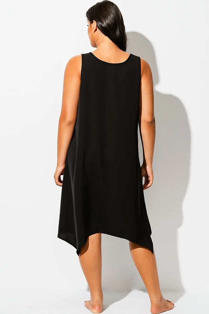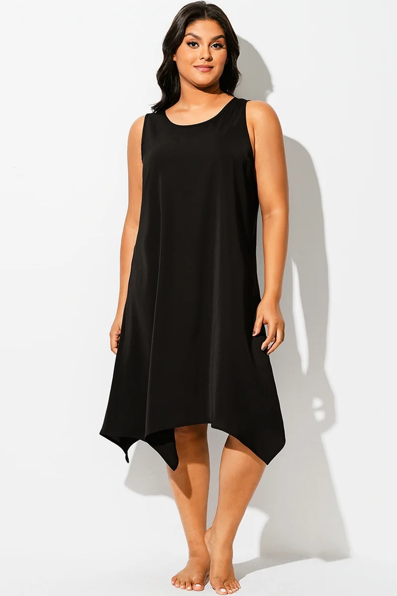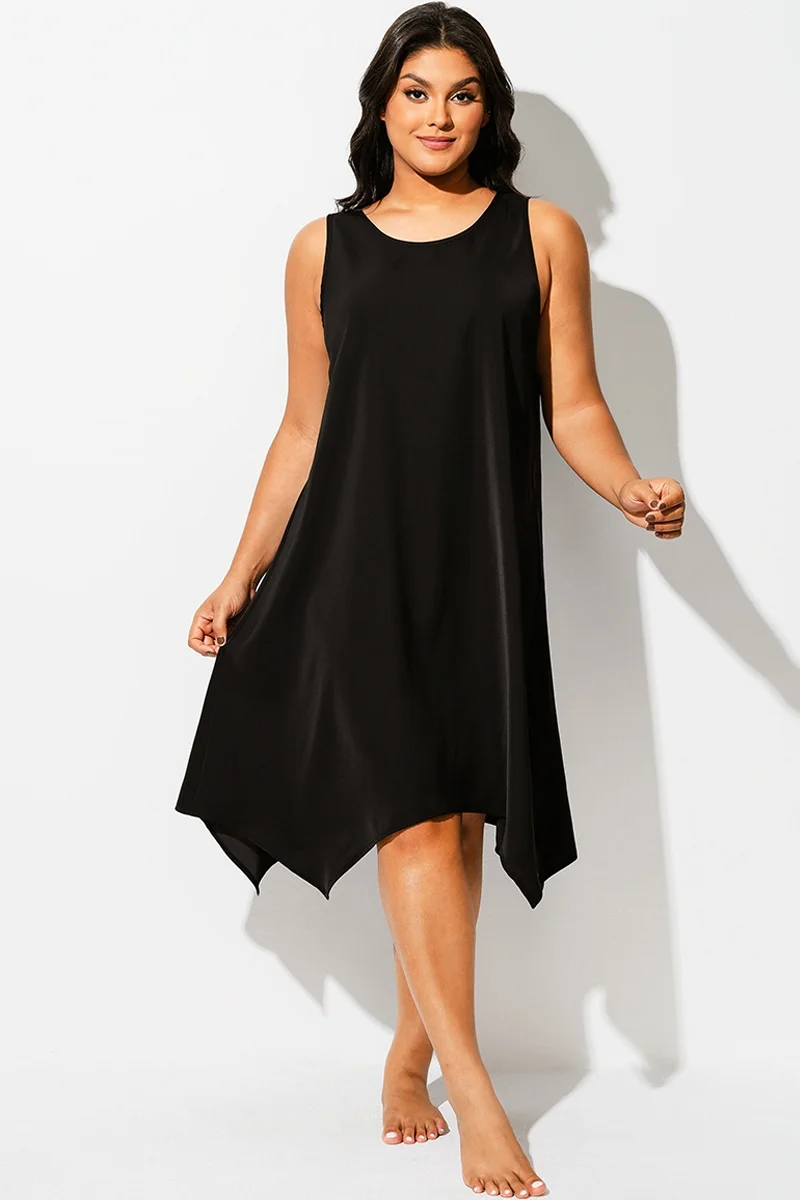 Solid Black Round Neck Sharktail Beach Cover Up - PremCurve