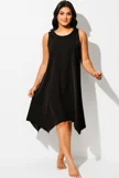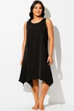 Solid Black Round Neck Sharktail Beach Cover Up